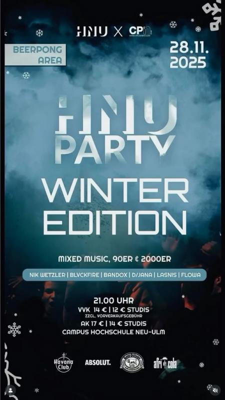 Freut euch auf eine Nacht voller Musik & bester Vibes – direkt an der Hochschule Neu-Ulm! 🎧💃